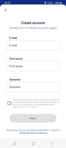 - Click on âCreate My2N accountâ.