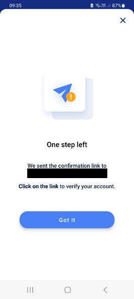 - An email with a verification link will be sent to your address.
