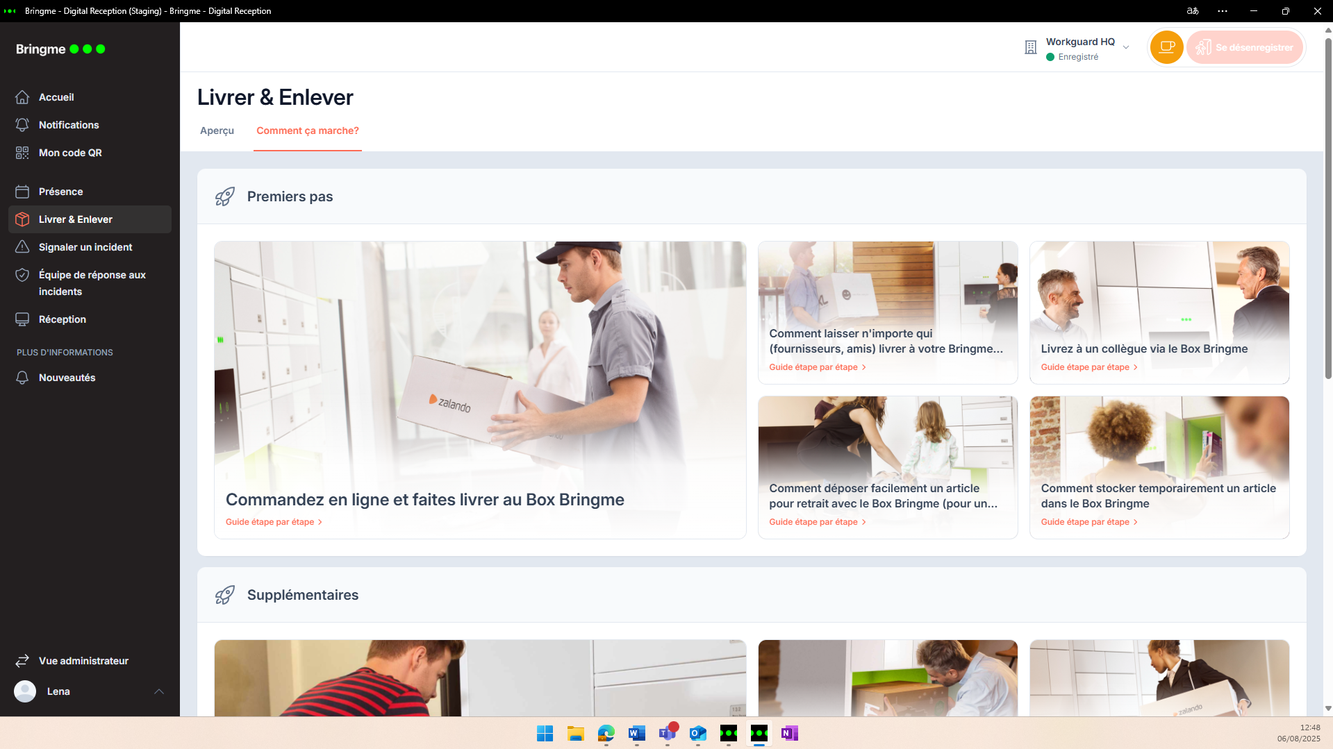 Pour aider les utilisateurs à démarrer rapidement, l'application Bringme présente une carte "Comment ça marche?" directement sur la page d'accueil. Cela donne un accès rapide aux guides étape par étape utiles.